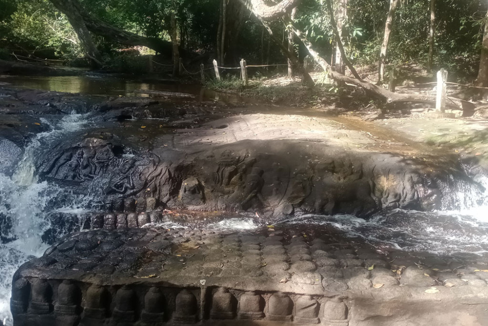Out of Angkor National Park, we’ll visit Kbal Spean which is located in deep the Jungles. Drive 45 mins from your hotel and we walk 1.5 kilometers in 45 mins up to the hill, you’ll see thousands of Siva linga carved on the Riverbed, Recling Vishnu and other Hindu Gods carved on Rock.