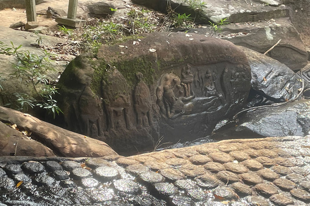 Out of Angkor National Park, we’ll visit Kbal Spean which is located in deep the Jungles. Drive 45 mins from your hotel and we walk 1.5 kilometers in 45 mins up to the hill, you’ll see thousands of Siva linga carved on the Riverbed, Recling Vishnu and other Hindu Gods carved on Rock.