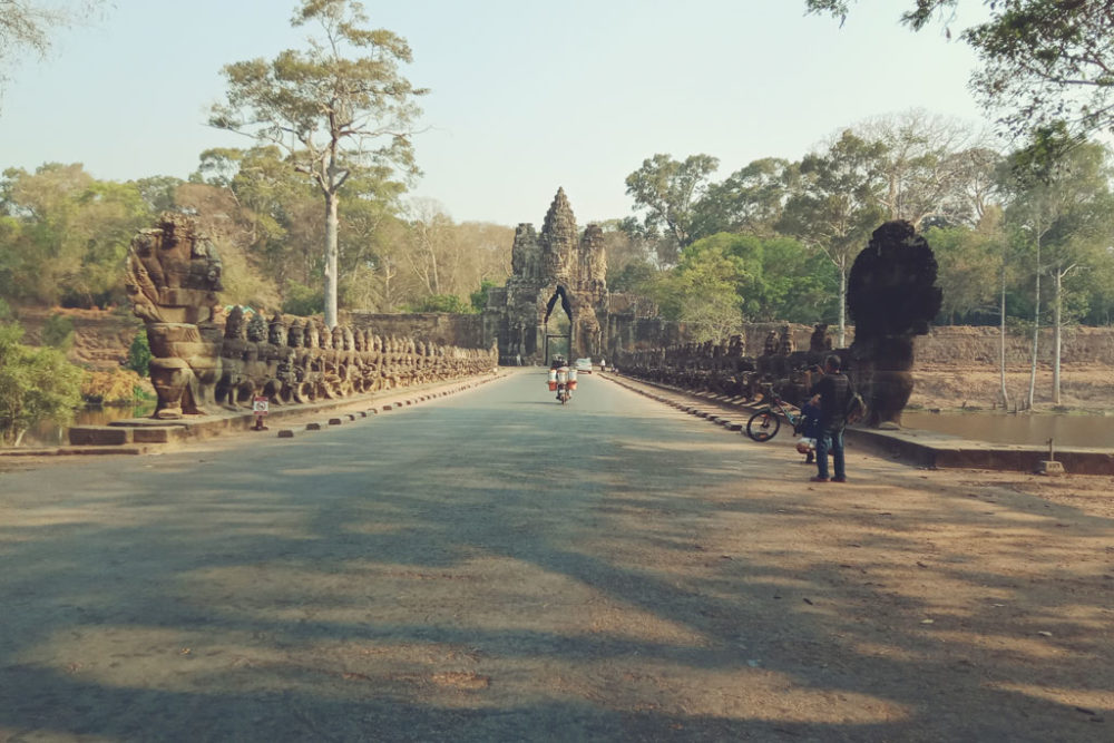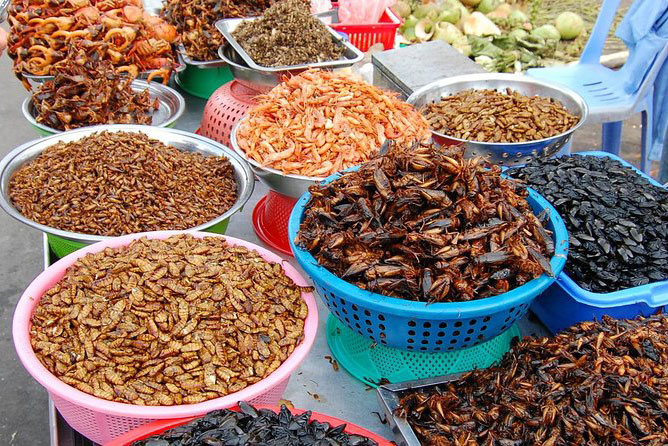 Depart your hotel at 2.00 pm to visit the southern gate of Angkor Thom. The gate, flanked by a row of 54 stone figures on each side, was the entrance to the fortified city of Angkor Thom. At ‘The Bayon’ (12th century) we see its beautifully crafted central towers, covered in more than 200 enormous faces, and we explore the famous Terrace of the Leper King and the Terrace of Elephants. In the late afternoon we visit the beautiful Sun Set at Angkor Wat. Angkor Wat, the world’s largest sacred building and an architectural masterpiece. If you are lucky you can see the Golden Angkor Wat temple when the weather is good and the final Sun light shines on it. Next Your local guide will take you to the Town’s best street food destination and meet the local chefs and street food culinary creators, and your local guide will explain to you about cambodian cuisines. You can try some of the authentic taste of Cambodian traditional food snacks such as ice cakes, roasted flogs, fried crickets, fried grasshoppers, many kinds of roasted Tonle Sap fresh water fish, barbecued meat on skewers; Khmer fried chickens, ducks eggs, barbecued corn. As you wander around, you might see fried spiders or roasted snakes. We also see many kinds of local seasoning fruit. We taste some local fresh fruit juices or beers before returning to your hotel. This is an amazing and mixed-activity trip “All in One Journey” and will keep you entertained, provide you with new experiences, a great insight into the culture and history of Cambodia. This is a private tour “everything is flexible to your needs”.